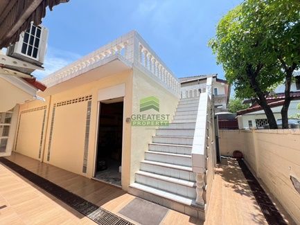 ประเภททรัพย์สิน : บ้านเดี่ยว 2 ชั้น มี 5 ห้องนอน, 4 ห้องน้ำ, 1 ห้องครัว, 1 ห้องเก็บของ, 1 โกดัง, 5 แอร์, 3 ที่จอดรถ