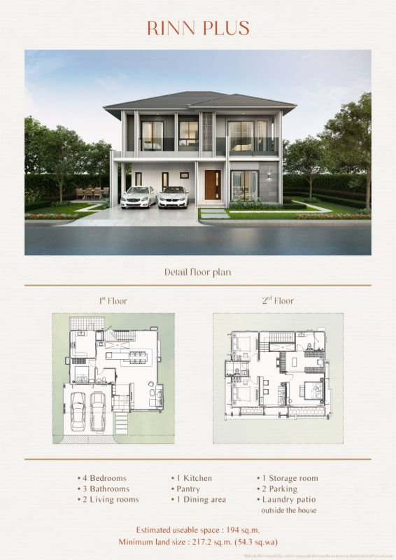 บ้านเดี่ยว (บางละมุง) เนื้อที่บ้านขนาด 69 ตรว. พื้นที่ใช้สอย 194 ตรม.
