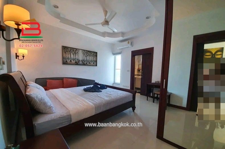 การตกแต่ง : พื้นปูด้วยกระเบื้องแกรนิตโต้ เฟอร์นิเจอร์ครบ มีม่านกั้นยูวีทั้งหลัง ติดมุ้งลวด+เหล็กดัด มีปั้มน้ำ+แท็งค์น้ำ แอร์ 4 เครื่อง เครื่องทำน้ำอุ่น 3 เครื่อง แอร์ 4 เครื่อง ภายในโครงการมีสาธารณูปโภคครบครัน อาทิ CCTV 7 ตัว, สระว่ายน้ำ