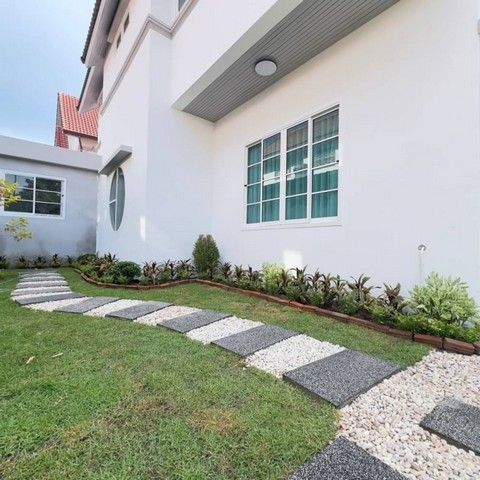 - ปูสนามหญ้า จัดสวนหิน พร้อมน้ำพุเสริมฮวงจุ้ย