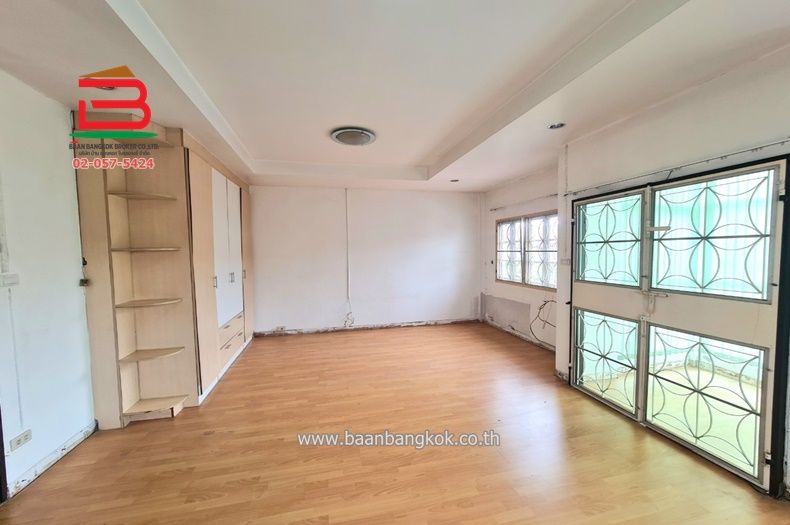 การตกแต่ง : พื้นชั้นล่างปูด้วยกระเบื้องแกรนิตโต้ พื้นชั้นบนปูปาร์เก้ ต่อเติมห้องครัว ติดเหล็กดัด+มุ้งลวด+ปั้มน้ำ+แท็งค์น้ำ แอร์ 2 เครื่อง หน้าบา้นติดประตูรั้วบานเลื่อน บ้านต้องรีโนเวทใหม่