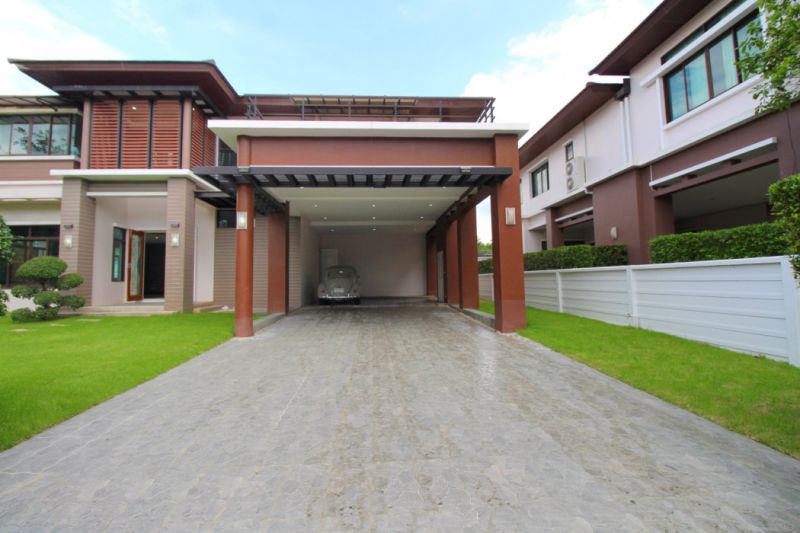 บ้านเดี่ยวหรู ติดถนนบางบอน 3 หลังใหญ่ สไตล์โมเดิร์น 150 ตร.ว. ต้นโครงการ จอดรถได้ 6 คัน