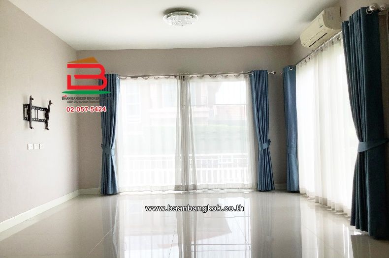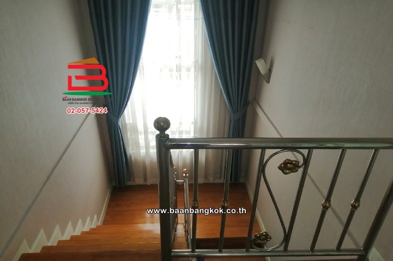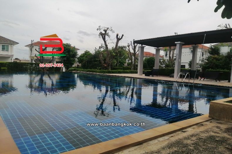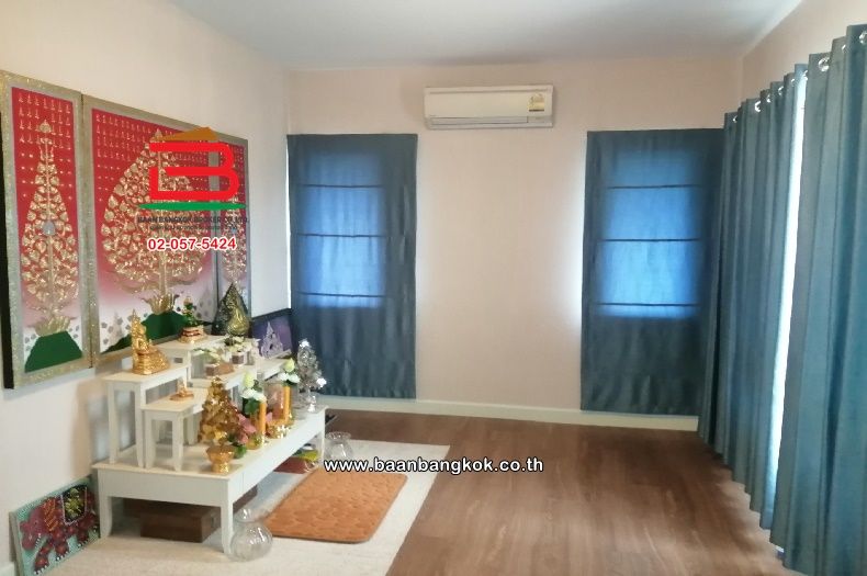 การตกแต่ง : มีต่อเติมลงเสาเข็ม 6 และมีพื้นที่สนามหญ้าข้างบ้าน ด้านหน้ามีการต่อเติมเป็นลาน(ปูพื้นด้วยกระเบื้อง) ลักษณะโซนห้องต่างๆ ชั้นที่ 1 พื้นปูด้วยกระเบื้องแกรนิตโต้ มี 1 ห้องโถง 1 ห้องนอน 1 ห้องทำงาน/อเนกประสงค์ 2 ห้องน้ำ 1 ห้องครัว ด้านหลังที่ต่อเติมสามารถกั้นทำเป็นห้องครัวเพิ่มได้ ลงเสาเข็ม 6 ไว้ และปั้มน้ำ-แท็งค์น้ำ ส่วนบันไดเป็นไม้สักทอง ราวบันไดทำใหม่เป็นเหล็กสแตนเลส ชั้น 2 พื้นปูด้วยลามิเนต มี 3 ห้องนอน 2 ห้องน้ำ มีระเบียงชั้น2(หน้าบ้าน) และมีการต่อเติมด้วยกระจกกันฝุ่น ติดมุ้งลวด-เหล็กดัด พร้อมชุดผ้าม่านทั้งหลัง แอร์ 8 เครื่อง และติดวอลเปเปอร์ บ้านมีระบบ magnetic และshock sensorทั้งหลัง(ที่ส่งสัญญาณสู่ระบบ รปภ.ส่วนกลาง) และมีสิ่งอํานวยความสะดวกในโครงการ อาทิ สวนสาธารณะ, คลับเฮาส์, ฟิตเนส, สระว่ายน้ำ, ระบบรักษาความปลอดภัย 24 ชม., กล้องวงจรปิด