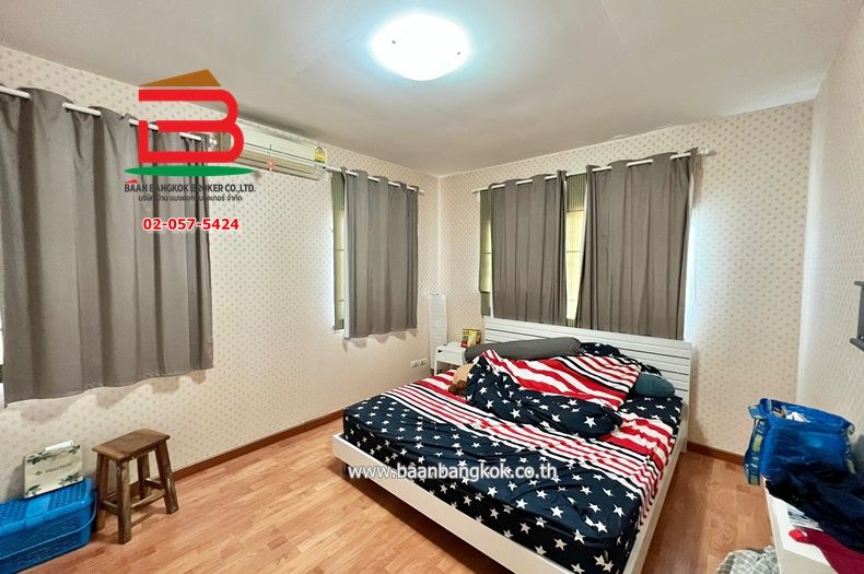 การตกแต่ง : พื้นชั้นล่างปูกระเบื้อง พื้นบ้านชั้นบนปูลามิเนต ต่อเติมครัว ติดผ้าม่านทั้งหลัง ติดมุ้งลวด+เหล็กดัด แอร์ 4 ตัว มีพื้นที่สวนในบ้าน ภายในโครงการมีสิ่งอำนวยความสะดวกอีกมากมาย อาทิ เช่น CCTV, รปภ. 24 ชม., สนามเด็กเล่น, สวนสาธารณะ, สระว่ายน้ำ