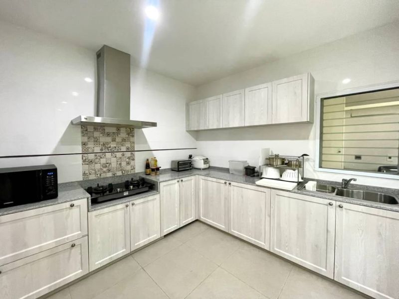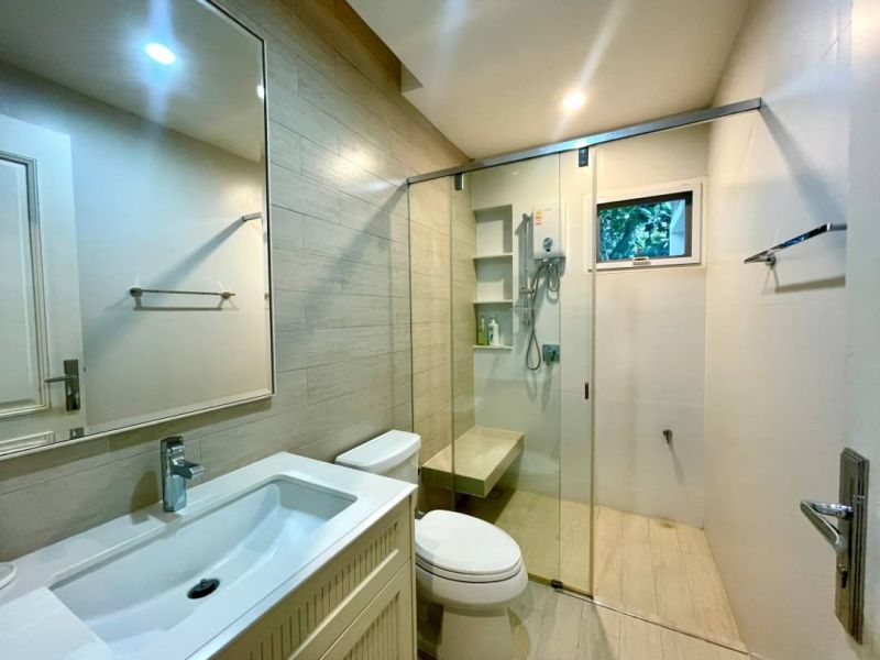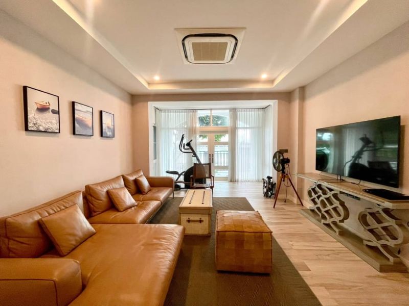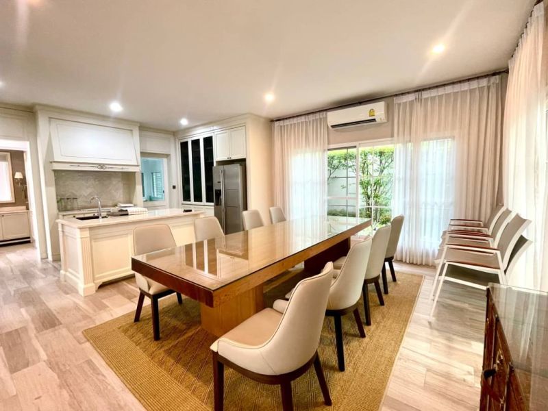 First floor have 1 bedrooms 2 bathrooms, large living and dinning room with garden view come with outdoor dining area, western and Thai kitchen, maid room, laundry area and 3 car parking.