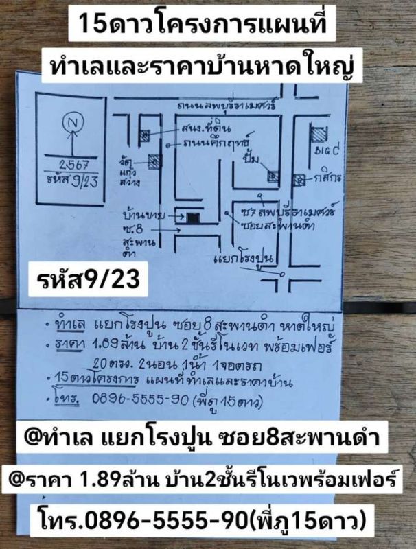 รหัส9/23 ทำเล แยกโรงปูน ซอย8สะพานดำ หาดใหญ่ สงขลาราคา 1.89ล้าน