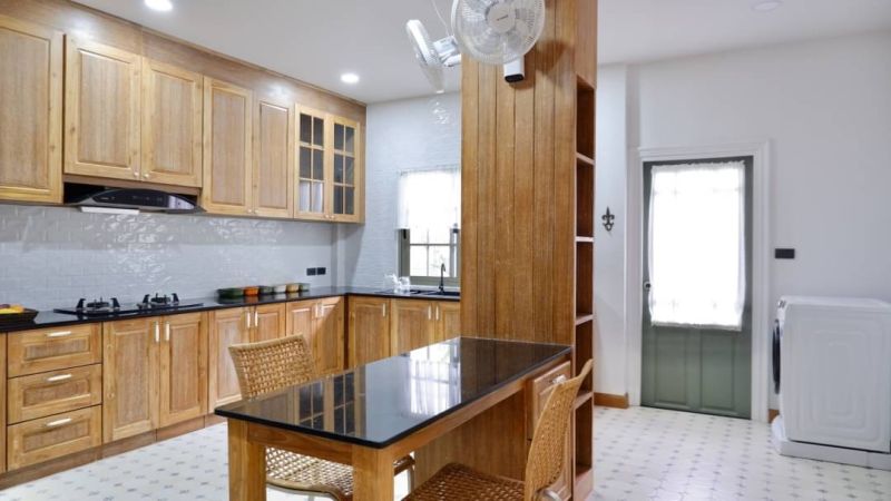 • ห้องครัว เคาน์เตอร์บิวท์อิน + เตา + ฮู้ด + ซิ้งค์ เตาอบ ไมโครเวฟ + เครื่องล้างจาน
