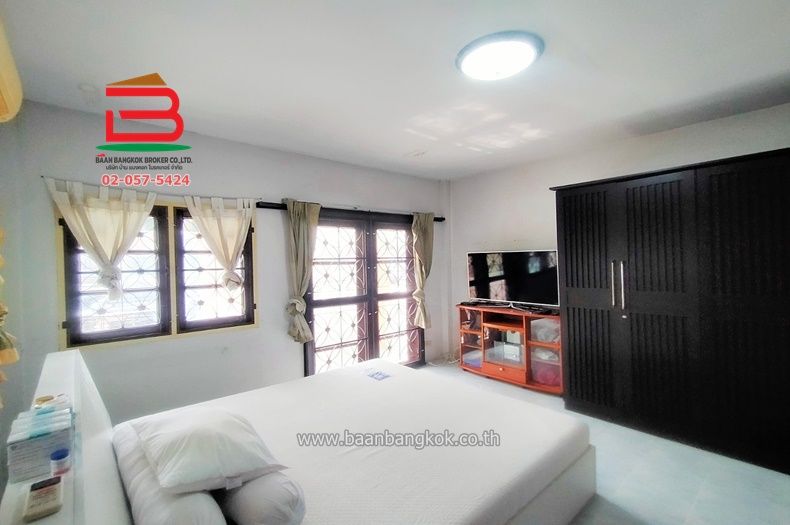 การตกเเต่ง : บ้านเล่นระดับแยกสัดส่วนระหว่างห้องรับแขกและห้องครัว ชั้นสองมีห้องนอนใหญ่และห้องนอนเล็ก มีระเบียงนั่งเล่นได้ ติดมุ้งลวด+เหล็กดัด มีปั้มน้ำ+แท็งค์น้ำ แอร์ 2 ตัว หลังบ้านมีโซนซักล้าง หน้าบ้านมีพื้นที่จัดสวนเล็กๆ ภายในหมู่บ้านมีสาธารณูปโภคครบครัน อาทิ รปภ.24ชั่วโมง, CCTV, สนามเด็กเล่น,สวนพักผ่อน
