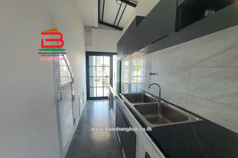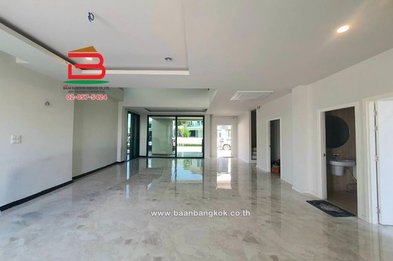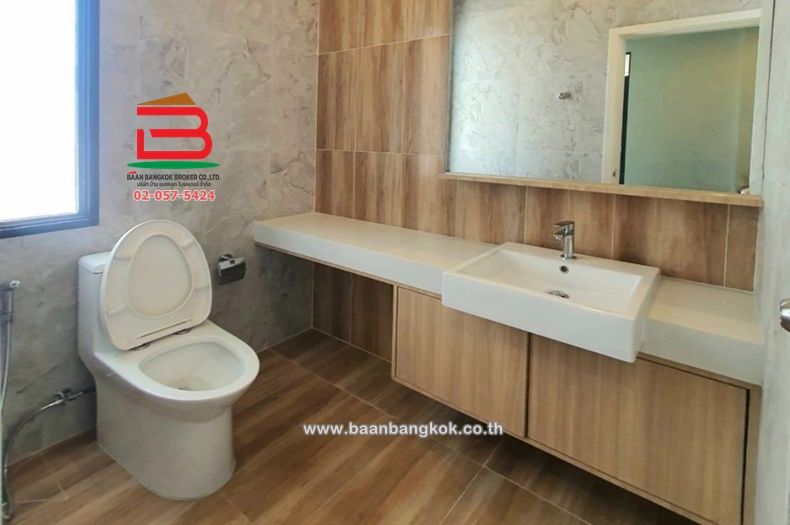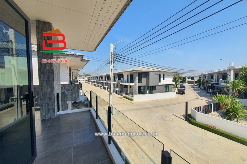 การตกแต่ง : พื้นชั้นล่างปูกระเบื้องแกรนิตโต้ 60 × 120 ซม.เหมือนบ้านตัวอย่าง พื้นชั้นบนเป็นไม้จริงเหมือนบ้านตัวอย่าง บันไดขนาด 1.20 เมตร ติดแอร์ทั้งหมด 5 ตัว ยี่ห้อ Inverter ทั้งหมด ส่วนห้องนอนติดแอร์ Wall Type ห้องโถงเป็นแอร์ฝังฝ้า 1 ตัว ตู้เสื้อผ้าบิวท์อินแล้วทุกห้อง ติดมุ้งลวดแบบจีบทั้งหลัง ติดฟิล์มกรองแสง 3m ทั้งหลัง ฝ้าเพดานเป็นฝ้าหลุม ฝ้าซ่อนไฟ ฝ้าซ่อนรางผ้าม่านเหมือนบ้านตัวอย่าง ปั้มน้ำ+แท็งค์น้ำติดตั้งแล้วเป็นแท็งค์น้ำซ่อนปั้ม มีพื้นที่ด้านหลังบ้านทำเป็นสวนหรือปลูกสร้างห้องเพิ่มเติมได้ หลังบ้านติดคลองพระอุดม แล่นเรือได้