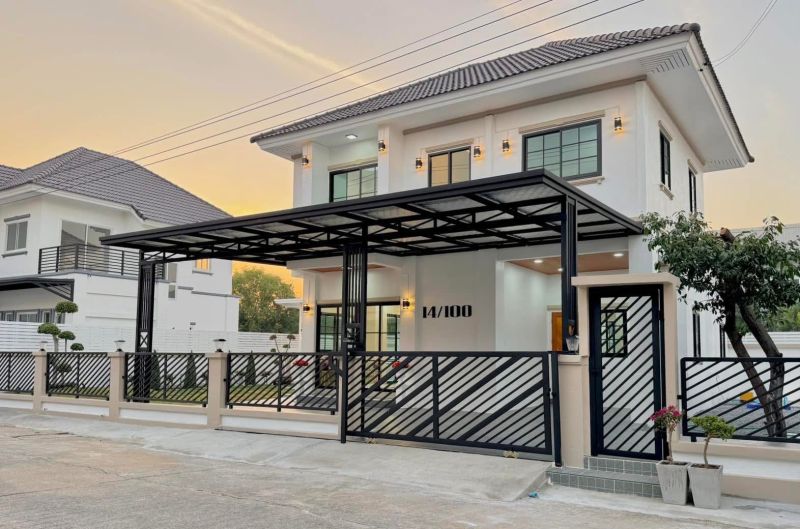 บ้านเดี่ยว 2 ชั้น ถนนเมน พื้นที่กว้าง ตกแต่งใหม่พร้อมอยู่ มีระเบียงชั้น2 รับลมเย็นสบาย มีศาลานั่งเล่นรับลมเย็นๆ