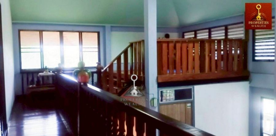 หลังใหญ่ยกพื้นสูง 1.25 ม. 2 ห้องนอนใหญ่ 2 ห้องน้ำ แยกอาคารครัว และเรือนพักคนรับใช้