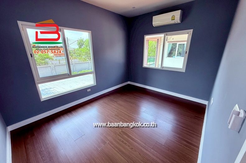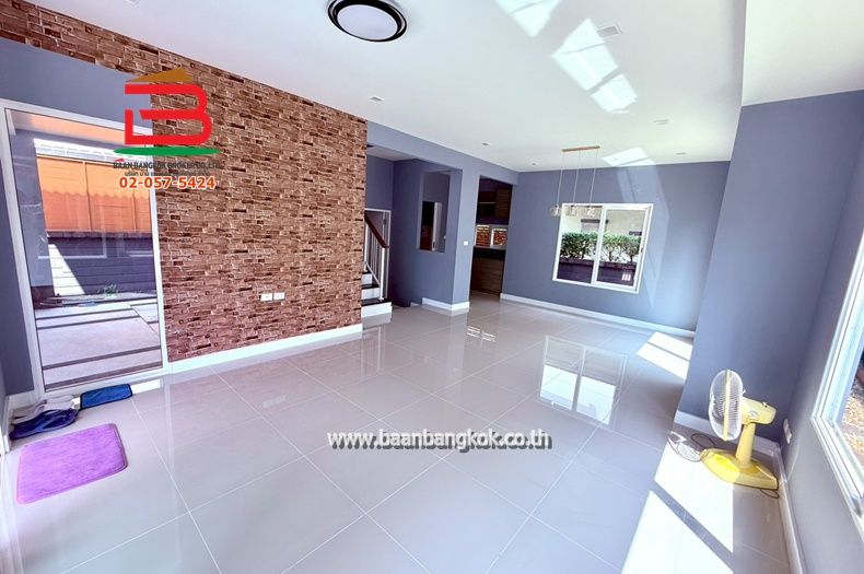 การตกแต่ง : บิ้วอิน และต่อเติมโรงจอดรถและห้องครัว ชั้นล่างปูด้วยกระเบื้องแกรนิโต้ ชั้นบนปูด้วยไม้ปาร์เก้ ภายในบ้านติดมุ้งลวด+เหล็กดัด+ปั๊มน้ำ+แท็งคน้ำ พร้อมแอร์ 3 เครื่อง ในโครงการมีสิ่งอำนวยความสะดวก อาทิ ระบบรักษาความปลอดภัย 24 ชม., สนามเด็กเล็ก, สระว่ายน้ำ และ CCTV