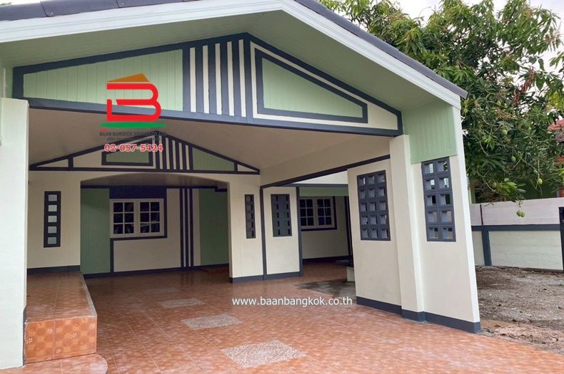 การตกแต่ง : ปรับปรุงทาสีตัวบ้านและรั้วหน้าบ้าน พื้นบ้านปูด้วยกระเบื้อง ห้องครัวมีเคาน์เตอร์ให้เรียบร้อย ฝ้าเพดานเป็นฝ้าเรียบ ติดมุ้งลวด+เหล็กดัด โซนด้านหน้าบ้านต่อเติมโรงจอดรถพร้อมเทพื้นปูกระเบื้องให้อย่างดี โซนหน้าบ้านมีพื้นที่เป็นบางส่วนสามารถปลูกผักสวนครัวหรือไม้ดอกไม้ประดับได้