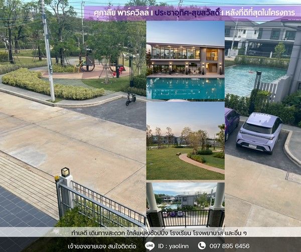 > หน้าบ้านติด สระว่ายน้ำ และ สวนเด็กเล่น