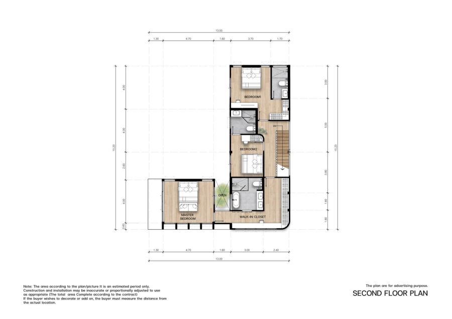3 Bedrooms, 4 Bathrooms (Each bedroom has an en-suite bathroom + 1guest bathroom)