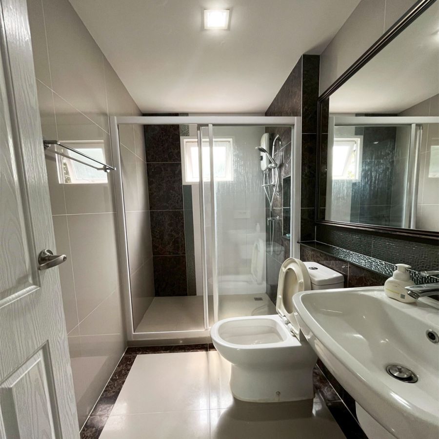 4 ห้องนอน 4 ห้องน้ำ 1 ห้องครัว 1 ห้องรับแขก 1 ห้องทำงาน 2 ที่จอดรถ แอร์ 5 ตัว