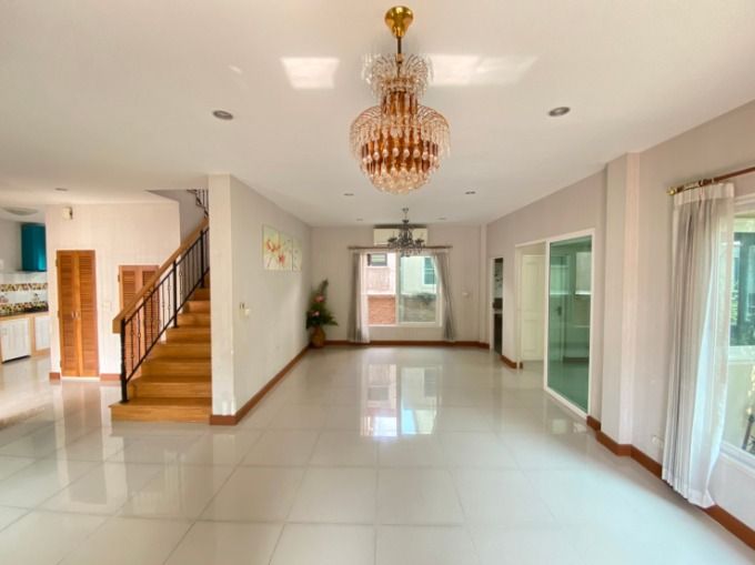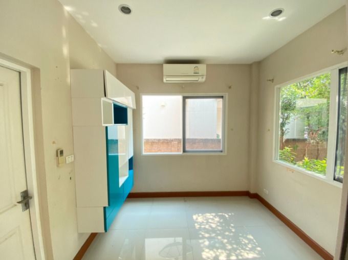 The house door faces south. The atmosphere is good. The wind blows cool in every season. The house is still new and ready to move in. Added a walk-in closet - built-in kitchen, wallpapered the whole house. Affordable price, already reduced. Good location. The project is on Kanchanaphisek Road.