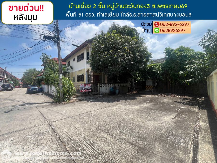 ขายบ้านเดี่ยว 2 ชั้น หมู่บ้านตะวันทอง3 ถนนเพชรเกษม69 หนองแขม หลังมุม พื้นที่ 51 ตรว. ทำเลเยี่ยม ใกล้โรงเรียนสารสาสน์วิเทศบางบอน3