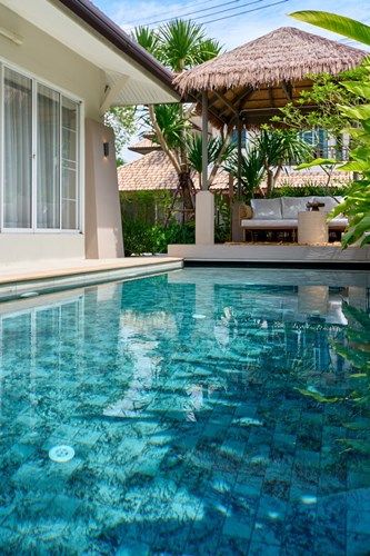 * สระว่ายน้ำระบบเกลือพร้อมศาลาพักผ่อนสไตล์รีสอร์ท