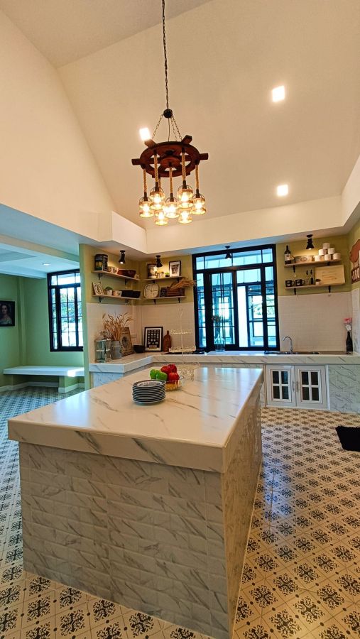 พร้อมห้องครัวแบบบ้านฝรั่ง มีโต๊ะ island กลางห้องครัว มีมุมนั่งเล่น ห้องรับแขกและมุมน่ารักๆอีกหลายมุม