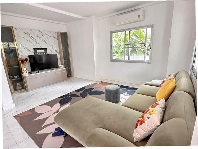 การตกเเต่ง : พื้นชั้นล่างปูกระเบื้องแกรนิตโต้ (ปรับปรุงใหม่) พื้นบน ปูด้วยพื้นไม้ปาร์เก้