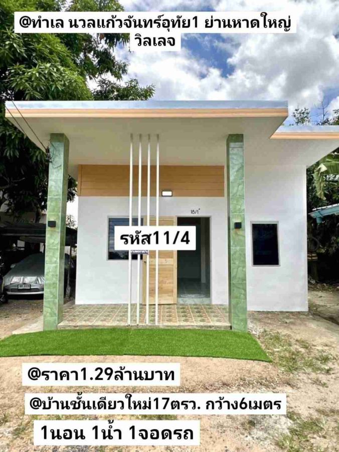 บ้านชั้นเดียวใหม่ 17ตรว 1นอน 1น้ำ 1จอดรถ หาดใหญ่