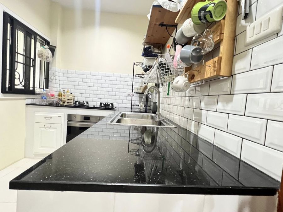 + ครัวฝรั่งในบ้านเคาน์เตอร์ครัวปูน บานประตูไม้แท้สีขาว Kitzcho