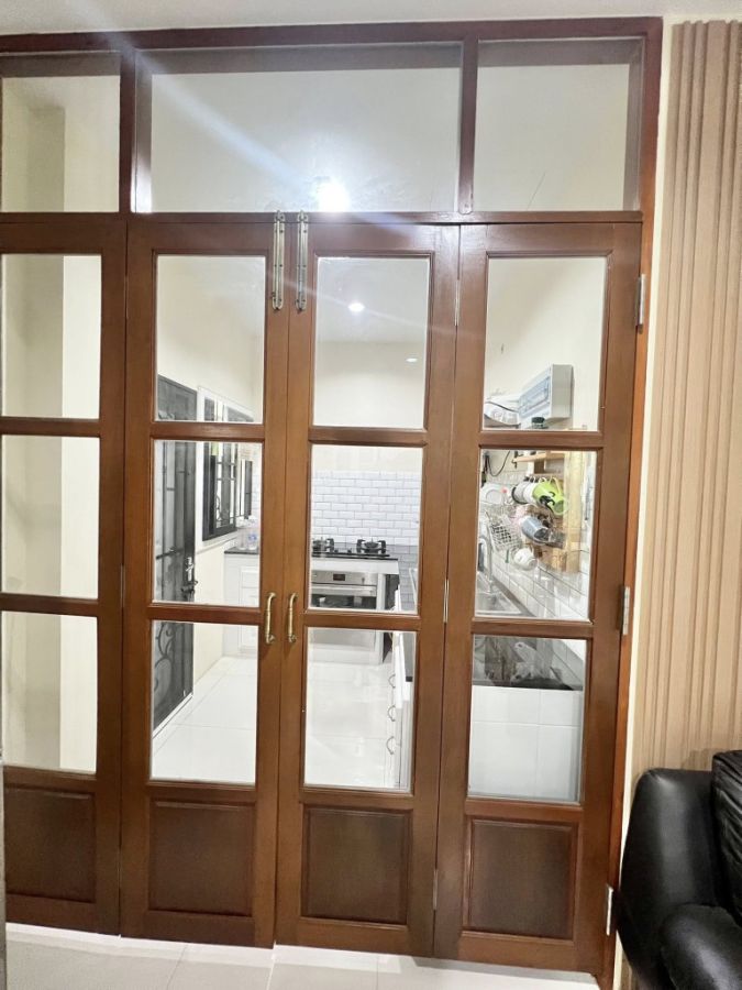 + กั้นห้องครัวด้วยประตูเฟี้ยมไม้แท้