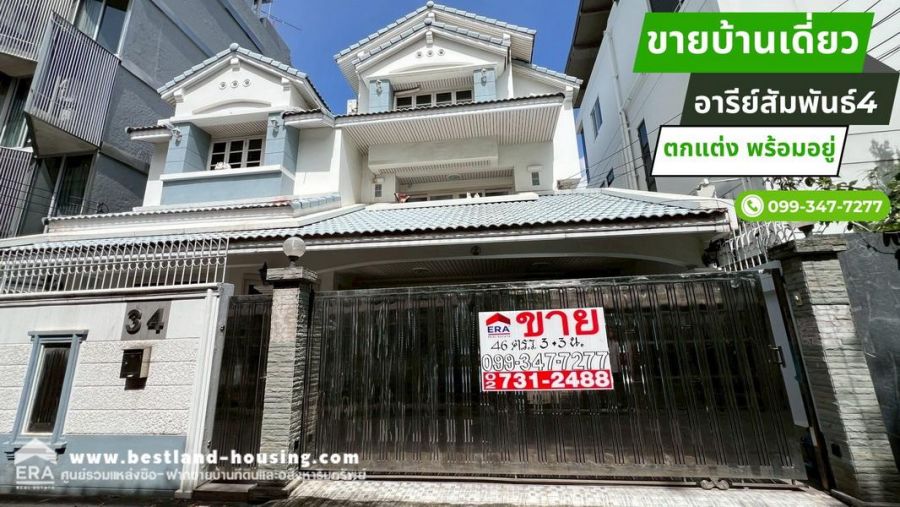 ขายบ้านเดี่ยว3ชั้น ซอยอารีย์สัมพันธ์4 ถนนพหลโยธิน ขนาด46ตร.วา แบบบ้านเล่นระดับตกแต่งลงตัวพร้อมอยู่ ใกล้รถไฟฟ้าBTSสถานีอารีย์ใกล้ทางด่วน2