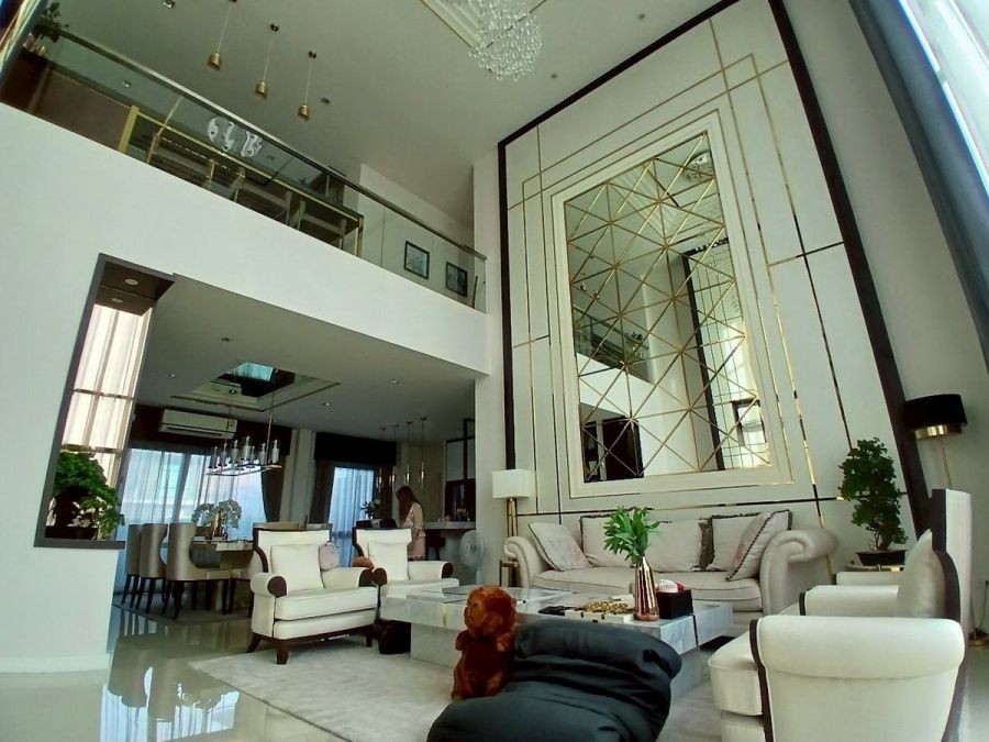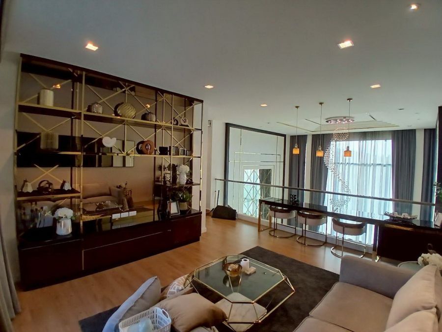 - โซนรับแขกด้านล่างตกแต่งบิ้วอินหรูหรา พร้อมโซนรับประทานอาหาร เคาน์เตอร์บาร์