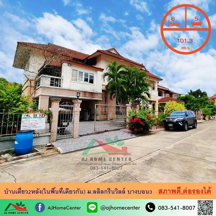 ขายบ้านเดี่ยว2ชั้น รวม2หลัง ในเนื้อที่101.3ตรว. ม.ลลิลกรีนวิลล์ บางบอน3 สภาพดี ราคาพร้อมคุย