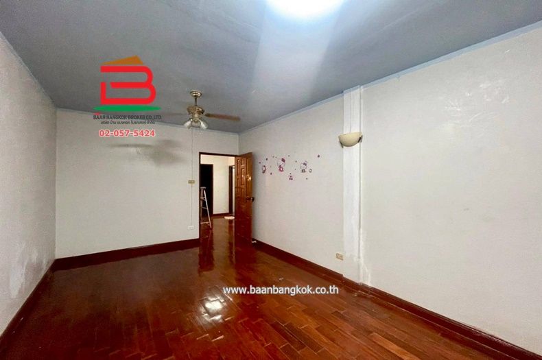การตกแต่ง : พื้นล่างปูกระเบื้องแกรนิต พื้นบนปูปาร์เก้ ติดมุ้งลวด+เหล็กดัด มีปั้มน้ำ+แท็งค์น้ำ แอร์ 3 เครื่อง มีตู้เสื้อผ้าบิวท์อิน มีห้องเก็บของใต้บันได มีระเบียงด้านข้างห้องนอนเล็กและห้องนอนใหญ่ โรงจอดรถหน้าบ้านปูกระเบื้อง ต่อเติมห้องครัวข้างบ้านมีพื้นที่กว้าง 120 ซม. มีสิ่งอำนวยความสะดวก อาทิ เช่น รปภ.24 ชม., CCTV, สนามเด็กเล่น