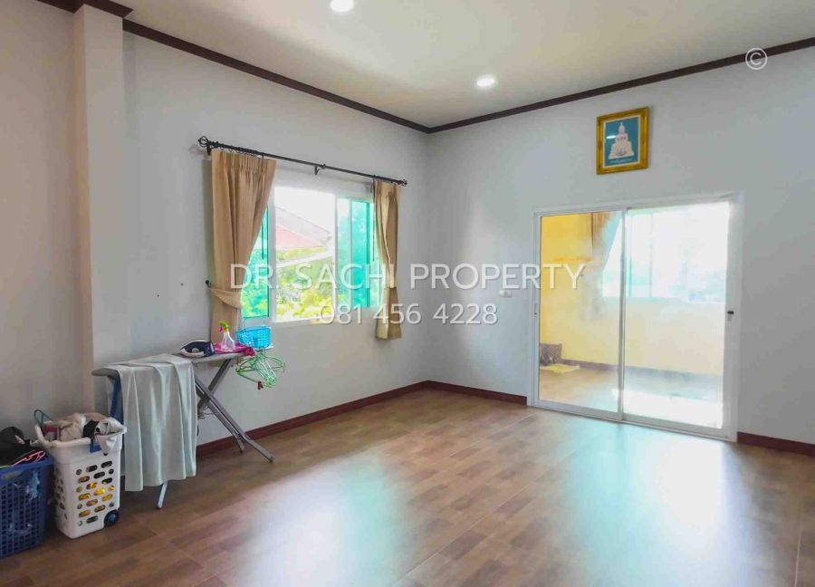 - 3 ห้องนอน, 2 ห้องน้ำ, 1 ห้องพระ, 1 ห้องครัว, 1 ห้องรับแขก มีระเบียงกว้างขวาง