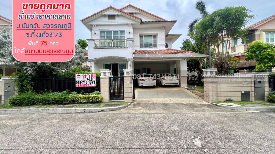 ขายบ้านเดี่ยว2ชั้นหมู่บ้านนันทวัน สุวรรณภูมิ ถนนกิ่งแก้ว พื้นที่ 75 ตรว. ขายต่ำกว่าราคาตลาด ของบ้านแปลนและพื้นที่ขนาดนี้ โครงสร้างบ้านดี บ้านตามสภาพเดิม ราคาถูกที่สามารถคุยราคาได้อีก บ้านใกล้สนามบินสุวรรณภูมิ
