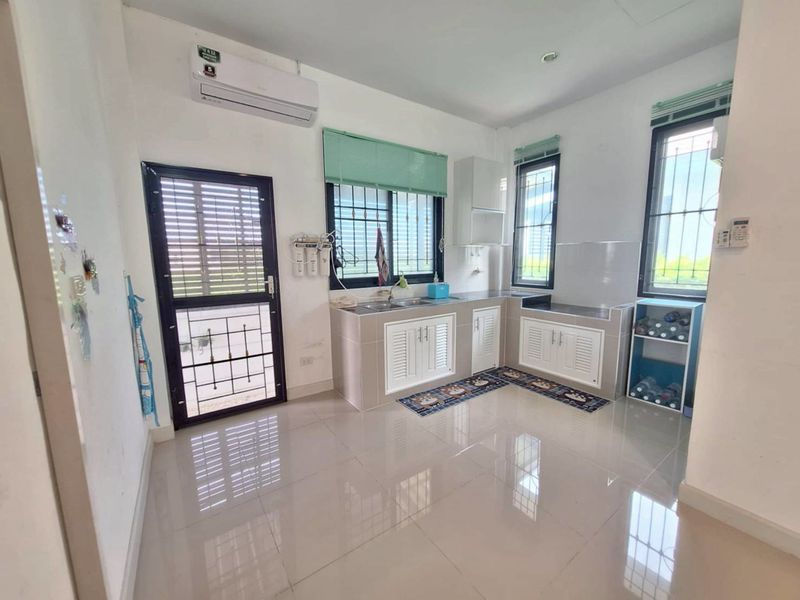 บ้านเดี่ยวชั้นเดียว 62ตรว. 3นอน 2น้ำ มบ.เคแกรนด์วิลล์ 1 เงียบสงบตามธรรมชาติ ต่อเติมและปูกระเบื้องเต็มพื้นที่ ใกล้นิคมอุตสาหกรรมโรจนะ เพียง 5นาที
