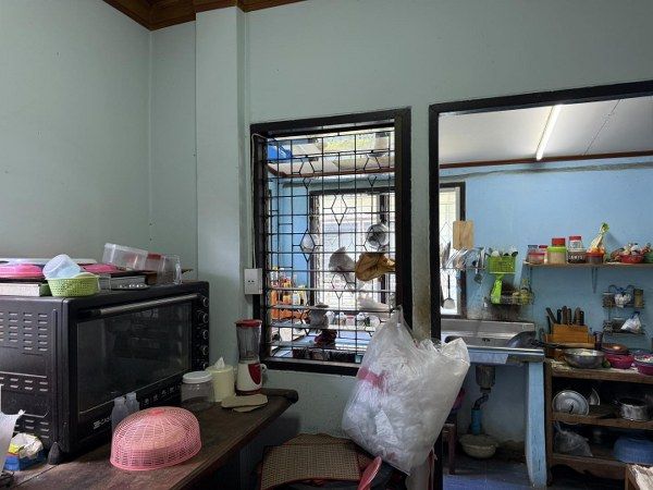 เป็นบ้านหลังมุม มีพื้นที่รอบบ้านกว้างมาก พื้นปูกระเบื้อง