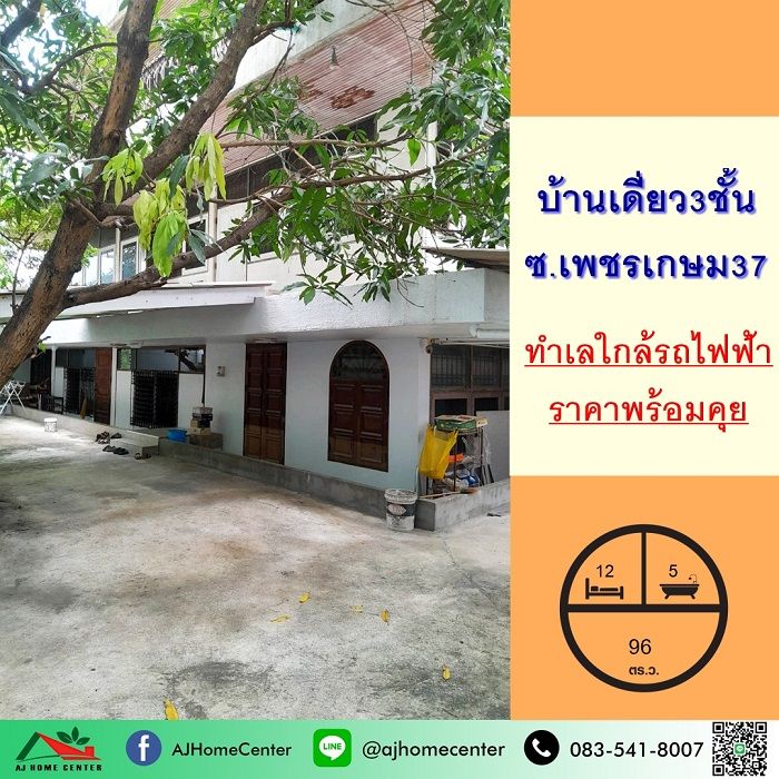 ขายบ้านเดี่ยว3ชั้น 96ตรว. ซ.เพชรเกษม37 ใกล้ซีคอนบางแค ทำเลดี ราคาพร้อมคุย