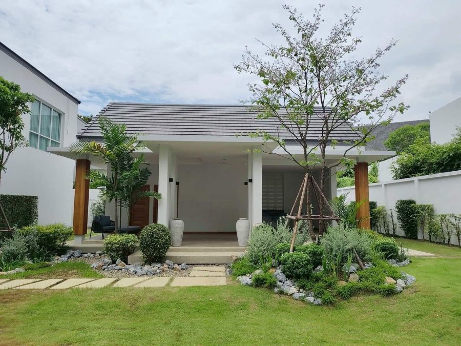 - พื้นที่สนามหญ้าหน้าบ้านกว้างสามารถจัดกิจกรรมกลางแจ้งได้หลากหลาย และรองรับพื้นที่ต่อเติมสำหรับครอบครัวขยายได้ในอนาคต