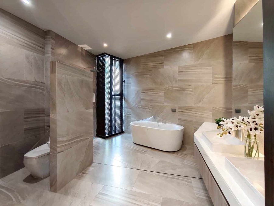 • Double-volume living room – Grand, open, and connected seamlessly with the pool view. Designed with large sliding glass doors to invite natural light and fresh air, creating a peaceful atmosphere surrounded by mature trees.