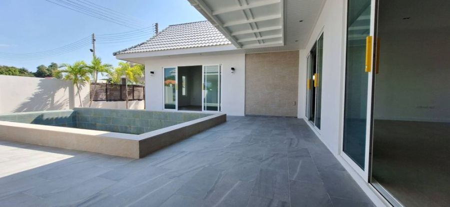 ขายบ้านเดี่ยวชั้นเดียว บ้านใหม่พร้อมสระว่ายน้ำ สไตล์พลูวิลล่า ซอยเกศแก้ว ห่างหาดชะอำเพียง 300 ม. ชะอำ เพชรบุรี