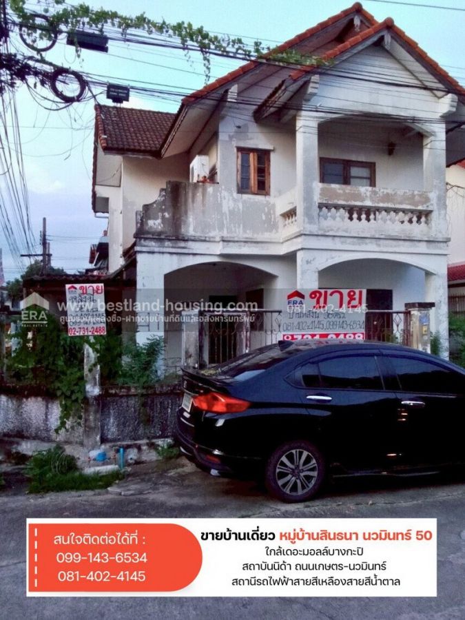 ขายบ้านเดี่ยว2ชั้นหมู่บ้านสินธนานวมินทร์ 50 ขนาดพื้นที่ 58ตรว.ขาย 4.2 ล.ใกล้เดอะมอลล์บางกะปิ สถาบันนิด้า ถนนเกษตร-นวมินทร์ สถานีรถไฟฟ้าสายสีเหลืองสายสีน้ำตาล