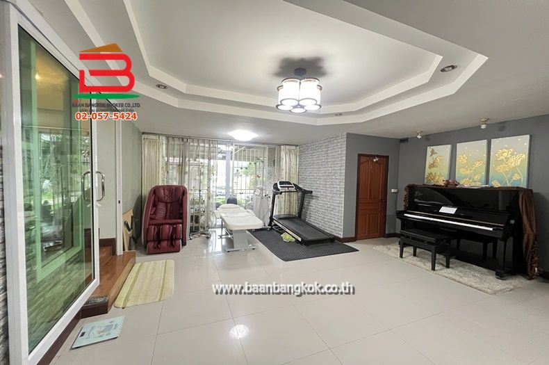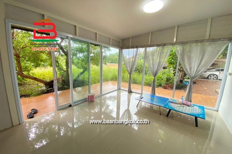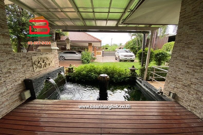 การตกเเต่ง : มีพื้นที่กว้างขวาง ข้างบ้านสามารถทำเป็นสวนขนาดใหญ่หรือปลูกบ้านเรือนเพิ่มเติมได้ มีสนามหญ้าจัดสวนปลูกต้นไม้ มีบ่อปลาขนาดเล็กสำหรับเลี้ยงปลา เเละ เป็นโซนสำหรับทำน้ำพุได้ บ้านตกเเต่งสวย พร้อมเข้าอยู่ ฟังก์ชั่นครบ ภายในบ้านพื้นปูด้วยปาร์เก้ไม้เเดงผสมแกรนิตโต้ ต่อเติมพื้นที่หลังบ้านทำเป็นห้องครัวไทย Build in ชุดครัว ติดเหล็กดัด+มุ้งลวด+วอลเปเปอร์+ชุดผ้าม่าน+ปั้มน้ำ+เเท็งค์น้ำ มีไฟดาวน์ไลท์และตกเเต่งด้วยโคมไฟน่ารัก พร้อมแอร์อีก 5 เครื่อง