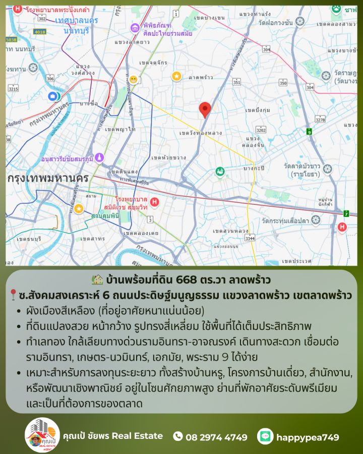 🚩 ที่ตั้ง: ซอยสังคมสงเคราะห์ 6 ถนนประดิษฐ์มนูญธรรม แขวงลาดพร้าว เขตลาดพร้าว กรุงเทพฯ 10230