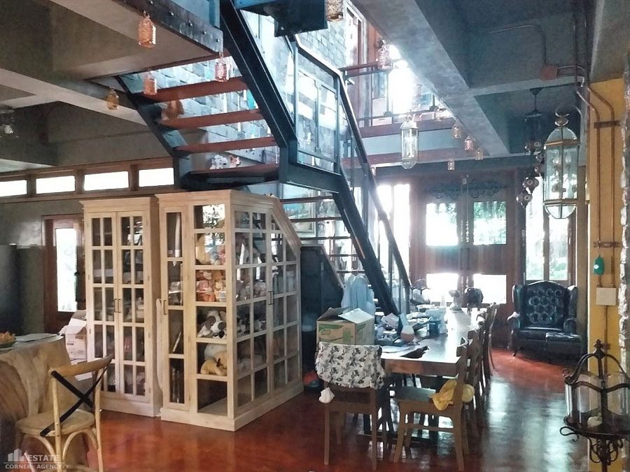 A distinctive 2-storey detached house with a unique Rustic Country-style design, surrounded by lush greenery, suitable for residential living or a business venture.