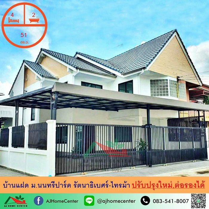 ขายบ้านแฝด51ตรว. ม.นนทรีปาร์ค รัตนาธิเบศร์-ไทรม้า ปรับปรุงใหม่พร้อมอยู่ ต่อรองได้