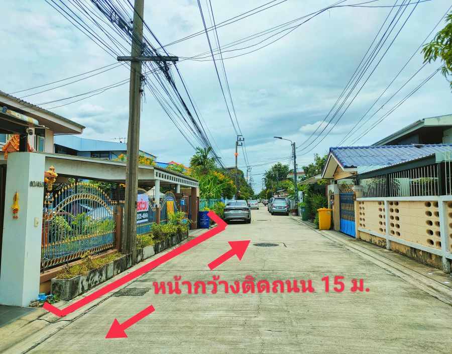 - หน้าบ้านติดถนนเมนกว้าง 15 ม. x ลึก 20 ม.