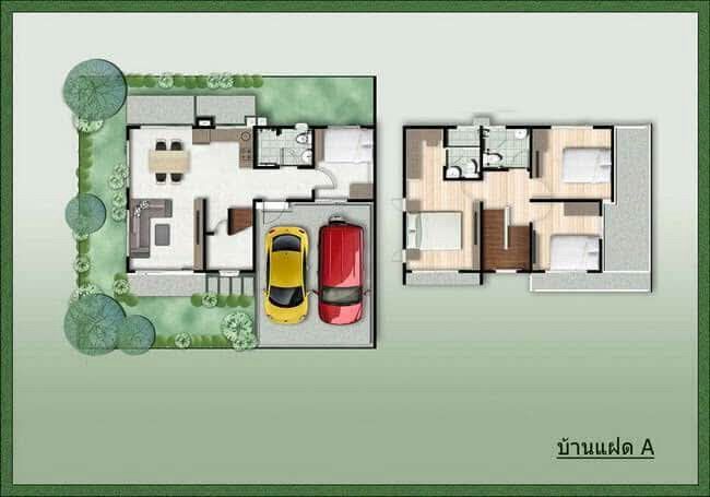 บ้านแฝด 2 ชั้น พื้นที่ใช้สอย 32.8 ตร.ว.