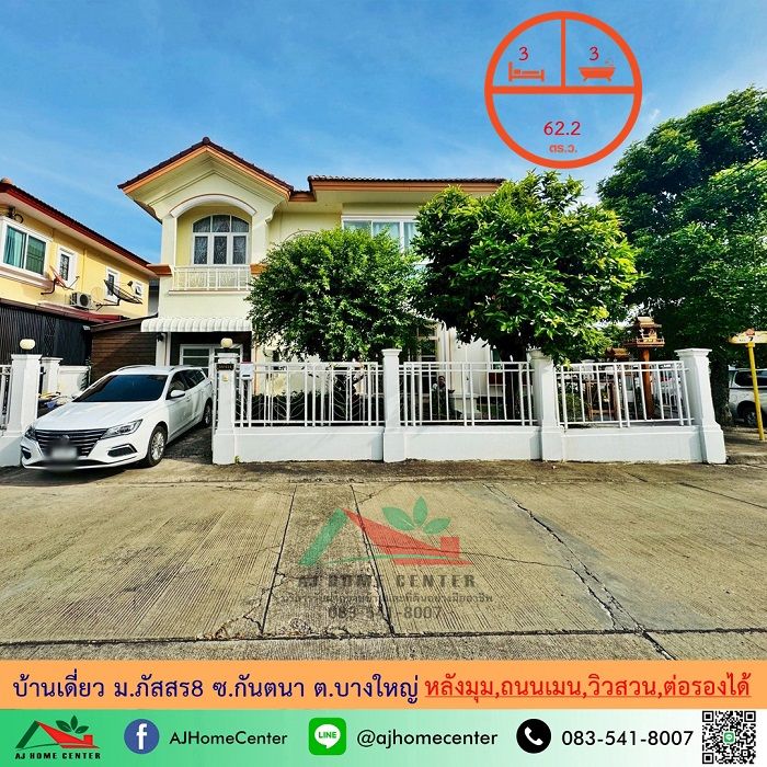 ขายบ้านเดี่ยว62.2ตรว. หลังมุม ม.ภัสสร8 ซ.กันตนา บางใหญ่ ถนนเมน วิวสวน ราคาพร้อมคุย