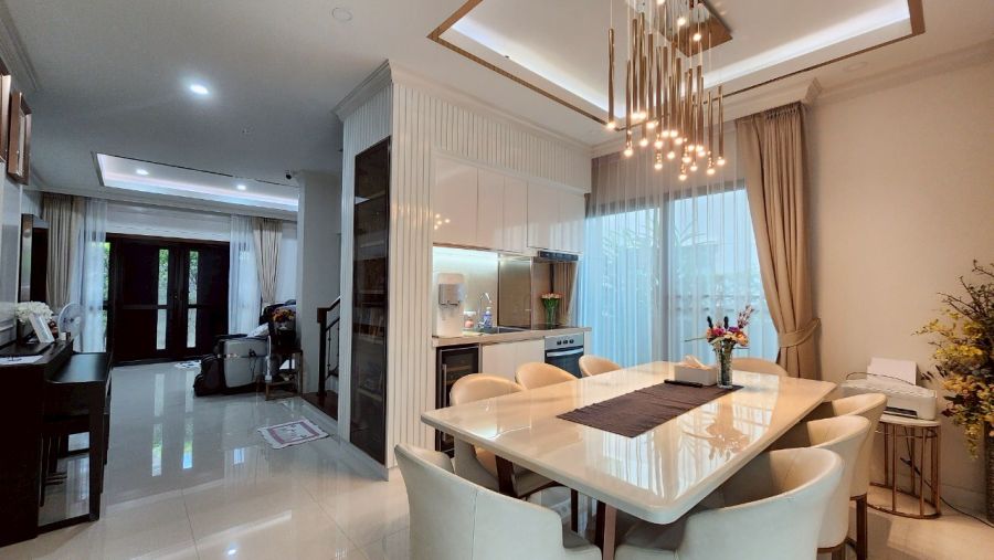 : ชั้น1 พื้นปูด้วยกระเบื้องแผ่นใหญ่มี 1 ห้องรับแขก 1 ห้องทานอาหาร 1 ห้องน้ำ 1 ห้องเก็บของ 1 ห้องอเนกประสงค์ 1 ห้องครัว มีโซนห้องนอนและห้องน้ำแม่บ้านแยกส่วนกัน