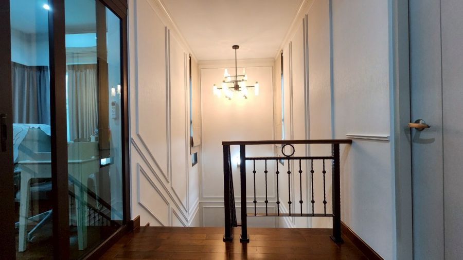 ชั้น 2 พื้นปูด้วยไม้แท้ รวมถึงราวบรรไดใช้ไม้แท้ มี 1 ห้องนอนใหญ่ในห้องมีระเบียงและห้องแต่งตัวพร้อมห้องน้ำในตัว และอีก 2 ห้องนอน พร้อมห้องน้ำในตัว มีพื้นที่สวนเดินได้รอบบ้าน